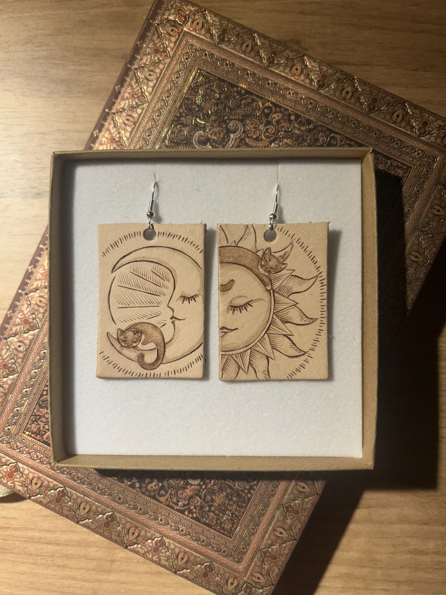 I also burn on leather making wonderful gift items such as bookmarks and keyrings. Some of my work has also been made into printed items such as my super cute stickers which I love! All of my printed work has been taken from original artworks and burnings.